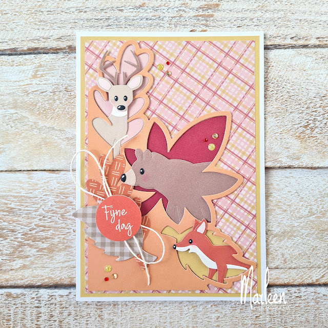 Een paar dagen eerder liet ik een slimline kaart met mijn nieuwste Creatable 'Layout Autumn leaves by Marleen'. Maar je kunt deze mal ook ontzettend goed gebruiken op een 'gewone' kaart met meer standaard maten!